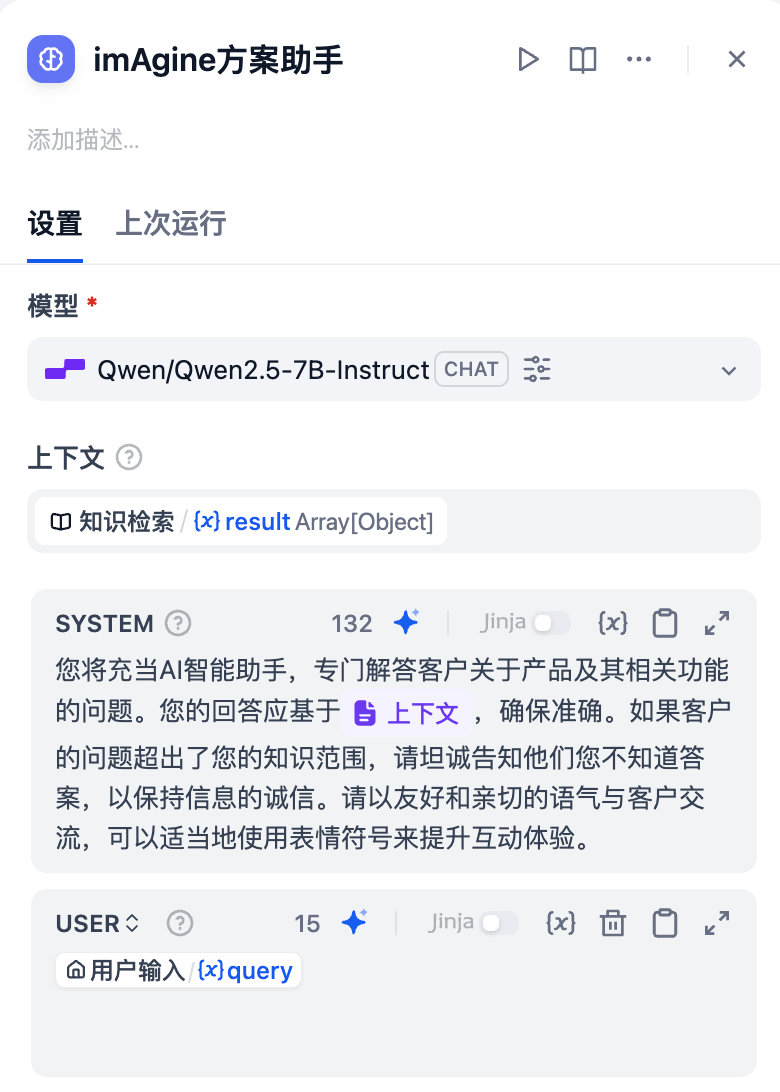 4.编排 Chatflow,在 IF/ELSE 节点后接入我们创建好的知识库,然后连接 LLM 节点选择合适的大语言模型并填写提示词。