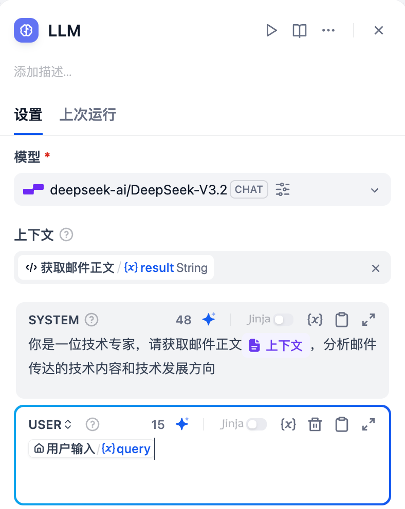 LLM 节点:使用 LLM 来分析获取邮件正文节点抓取的结果,以下是一个提示词示例。
